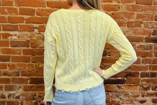 J.SOCIETY ACID WASH CABLE KNIT SWEATER