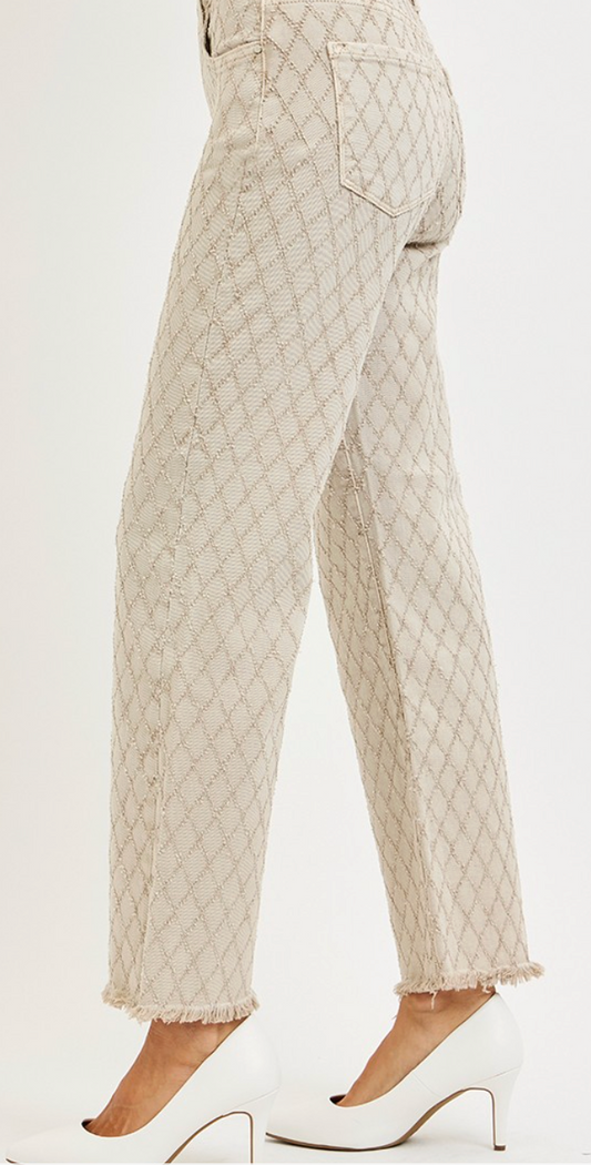 RISEN IVORY LATTICE STRAIGHT JEAN