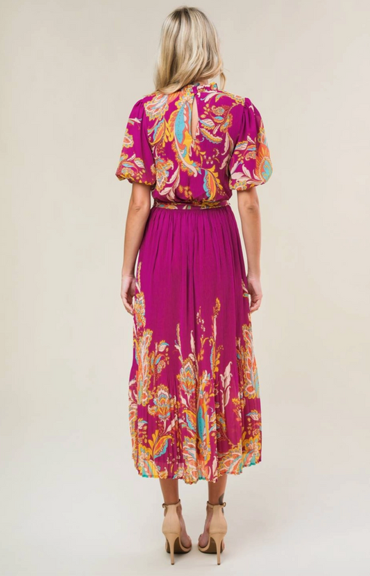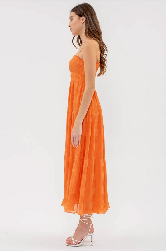 FLYING TOMATO SOLID WOVEN MIDI DRESS