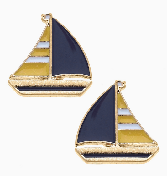 CANVAS STYLE ENAMEL SAILBOAT EARRINGS