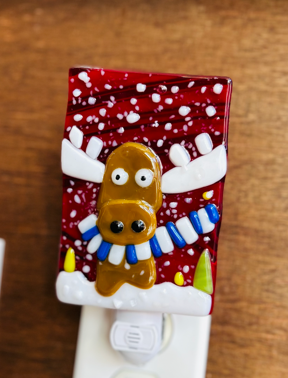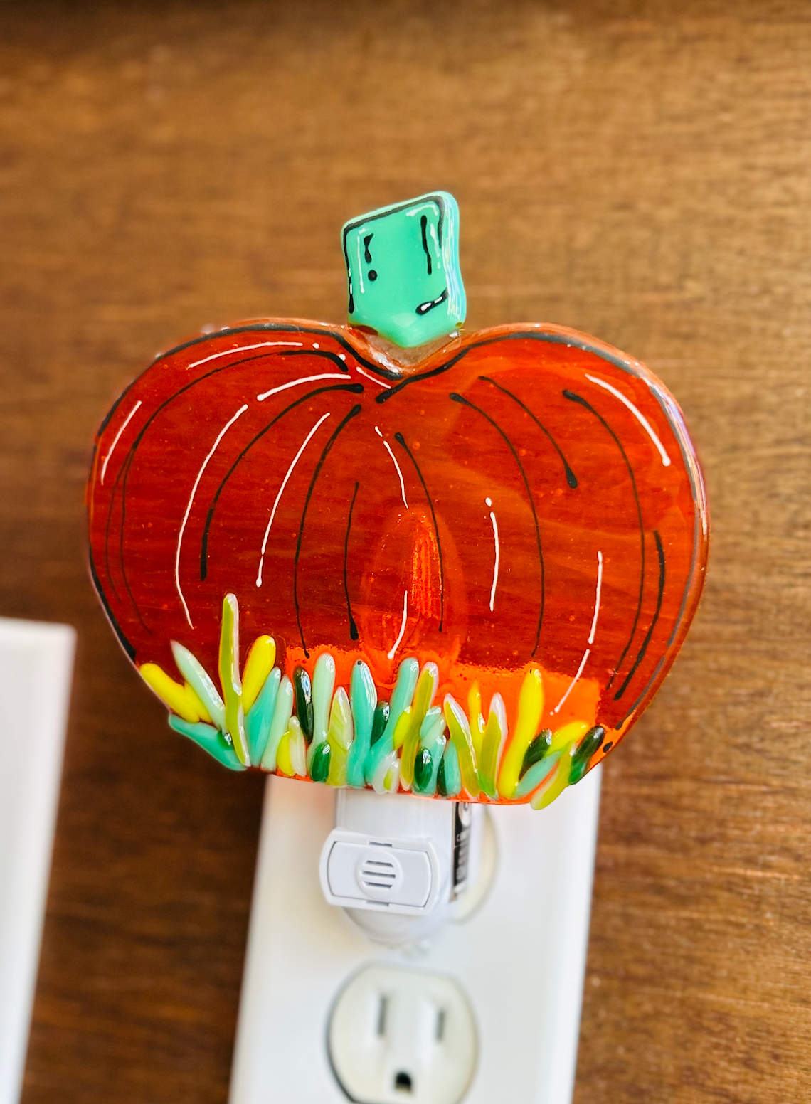 Light up your space with the colorful charm of these handcrafted fused glass nightlights. Each piece is carefully kiln-fused for a luminous, one-of-a-kind design that turns practical lighting into functional art. Whether casting a soft glow in a hallway, bathroom, or bedroom, these nightlights add a warm, welcoming touch and a pop of vibrant color to any corner.