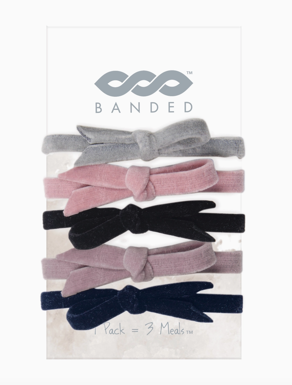 Strength & cuteness together in 1 tie! Great for unruly hair and gentle enough for finer textures; Soft sueded finish with cute knotted bow; 5 pack, 1 each color.