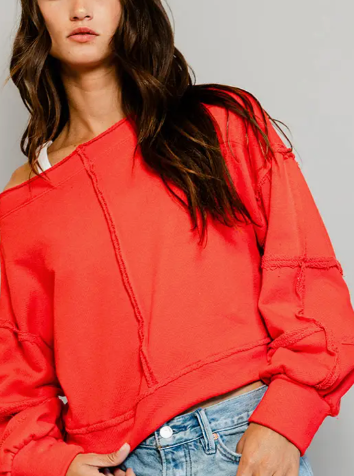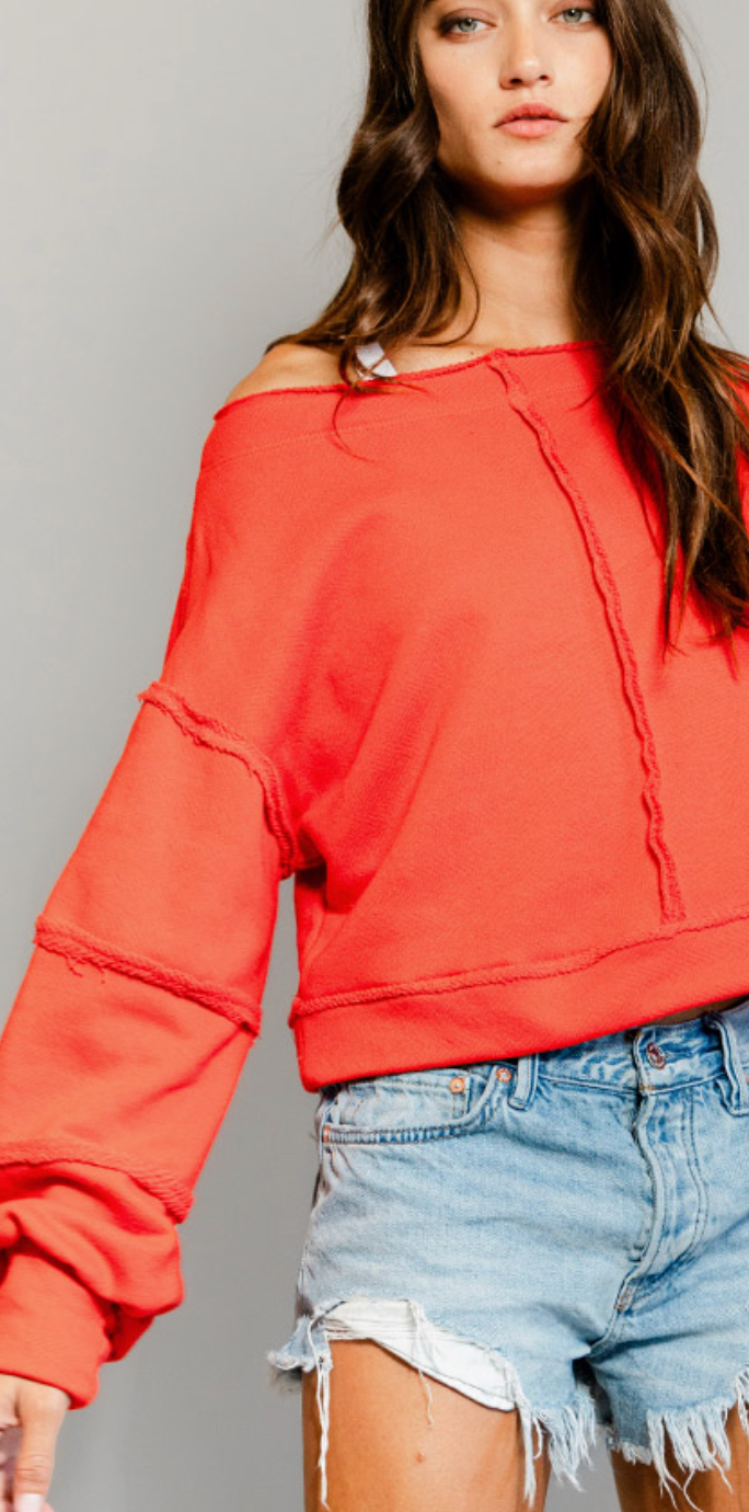 Meet your new favorite layering piece the Raw-edge Detail Solid Terry Crop Pullover. Crafted from buttery-soft terry fabric, this slouchy sweatshirt features a relaxed boat neckline, drop shoulders, and a boxy silhouette that screams effortless cool. Seam detailing and ribbed hems add vintage charm, while the slightly cropped length keeps things modern. Throw it on with jeans, shorts, or literally anything in your closet this lightweight essential transitions seamlessly from season to season.