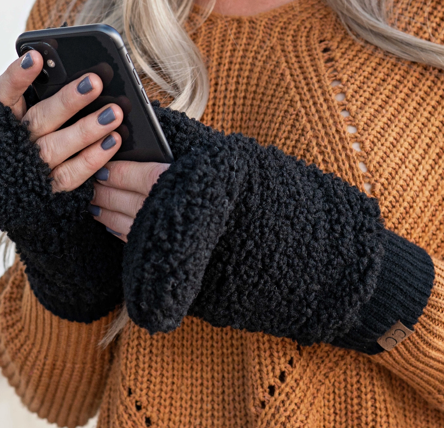 Stay cozy and stylish with these CC-soft sherpa mittens. Crafted of trendy Sherpa material, the mittens feature faux fur lining and authentic CC. branding and Quality for a luxe finish. Plus, the mittens fold down for finger access when you need them, making them practical for any outdoor activity or fashionable event. So why not be both?