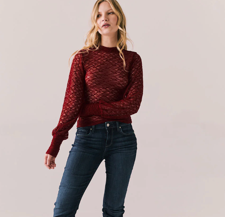 Evoking Regency-era romance, the Evelynnnn top features a high neckline and fitted silhouette complemented by charming gigot sleeves. Crafted from sweet lace fabric, this piece is made for date night, offering an effortlessly sensual and sophisticated look.