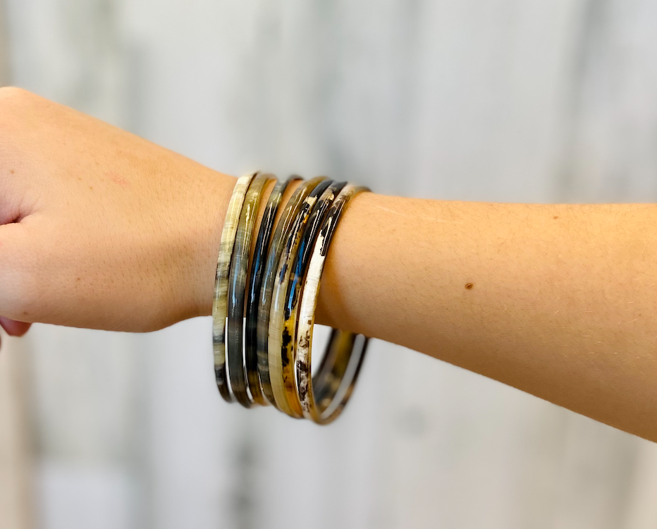 This dainty bracelet is made with repurposed animal horns. The perfect thin bangle to add to any outfit. The more the merrier!