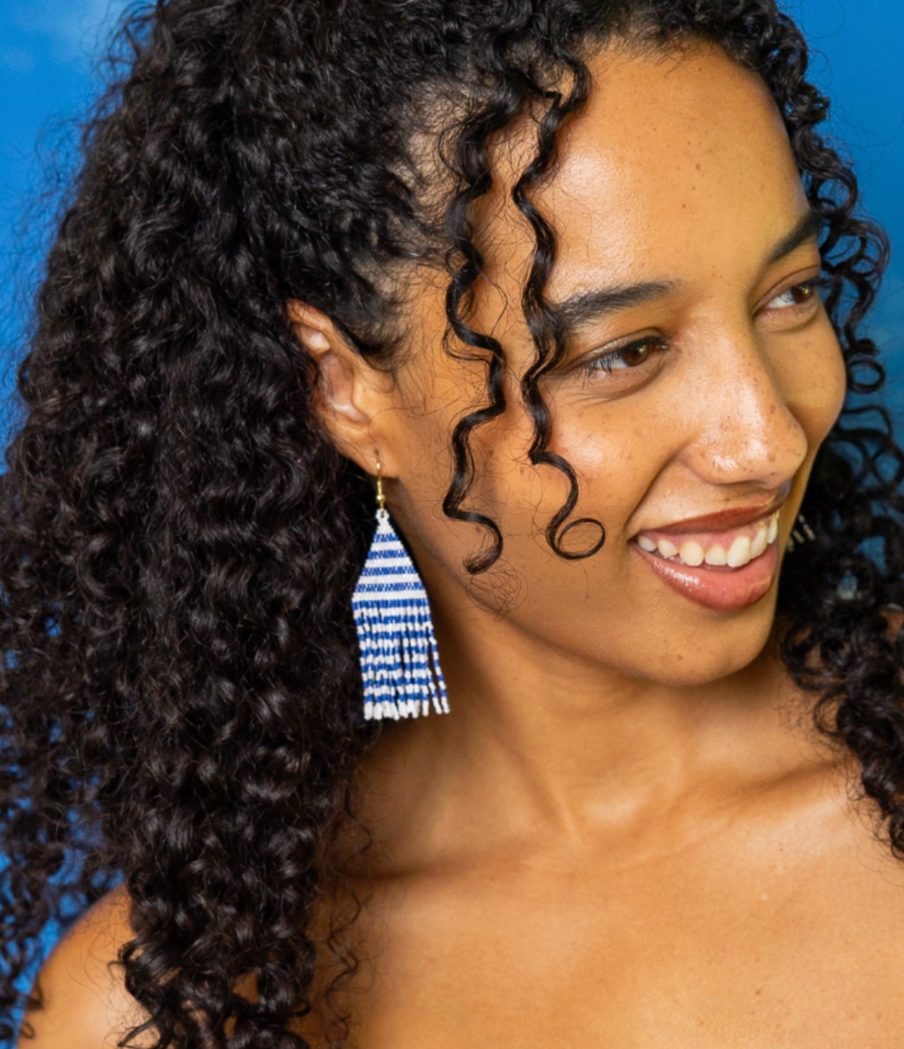Bring bold team spirit and bohemian flair to your game day look with the Lexie Horizontal Stripes Beaded Fringe Earrings. These statement earrings feature rows of royal blue and crisp white seed beads in an eye-catching striped pattern. Layers of beaded fringe dangle below, swaying gracefully with every movement as you cheer on your team to victory. Measuring 3.25 inches long, the Lexie Earrings are the perfect size to make an impactful yet wearable statement. The contrasting blue and white hues create a classic color story inspired by vintage sportswear. Whether you're cheering in the stands or meeting friends post-game, these eclectic fringe earrings instantly liven up any game day outfit.