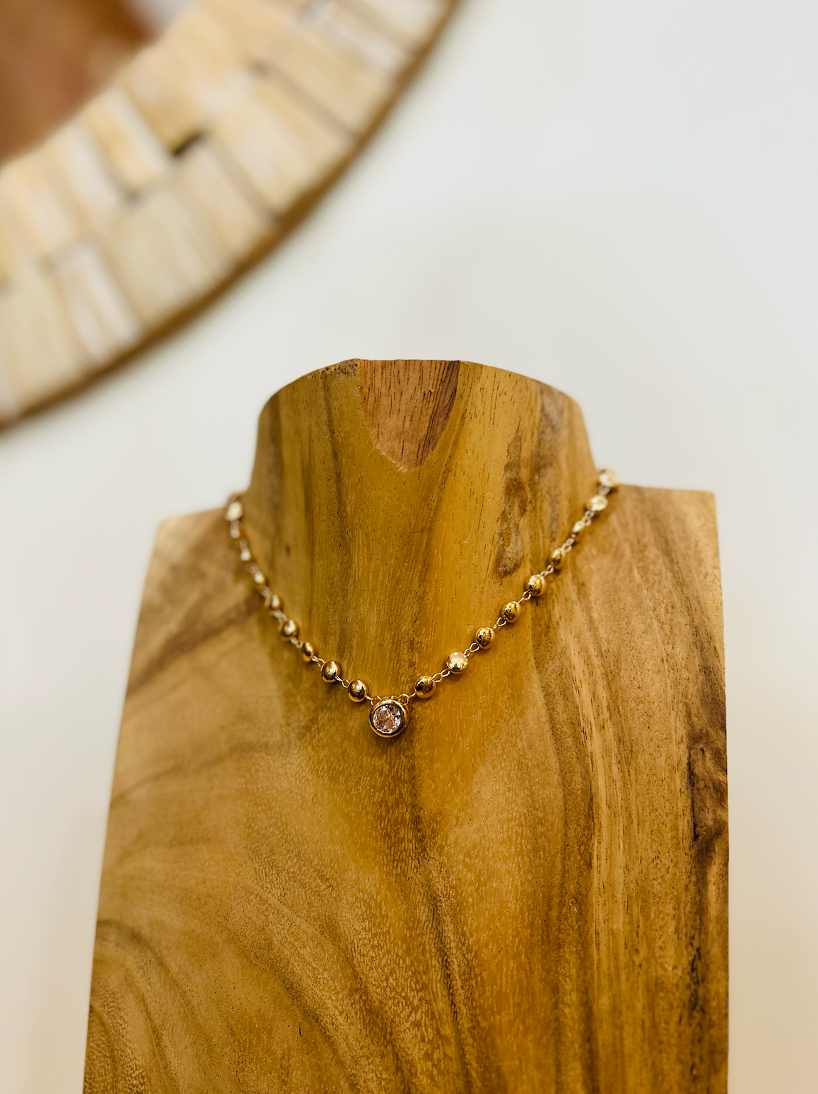 Add a touch of timeless elegance to your everyday look with our Valora necklace. Featuring a delicate string of gold-toned beads and a single shimmering stone at its center, this piece balances minimalism with quiet luxury. Perfect worn solo or layered with your favorite chains.