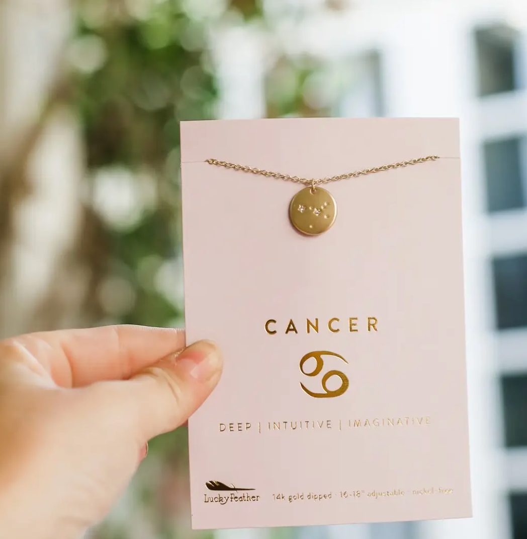 Gorgeous zodiac constellation necklace in all 12 zodiac signs. These golden constellations are detailed with beautiful cubic zirconias. Lightweight making it perfect for everyday wear!