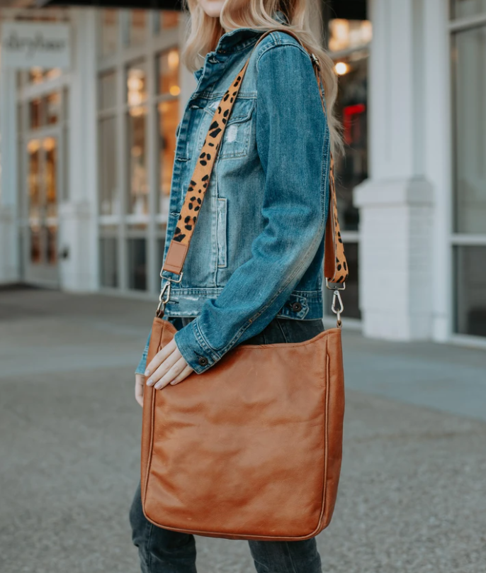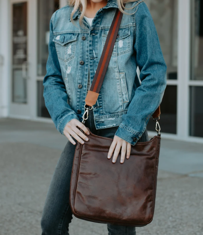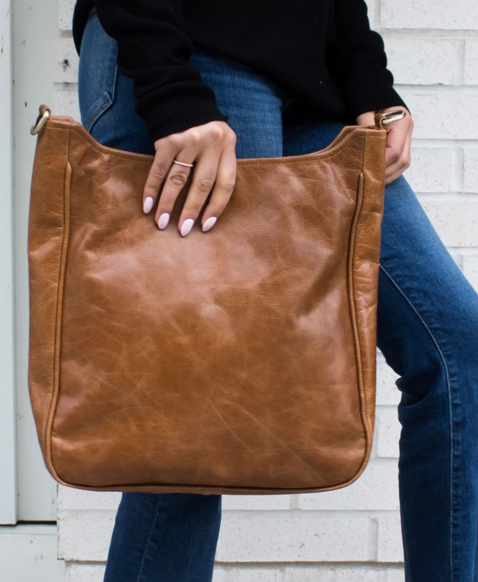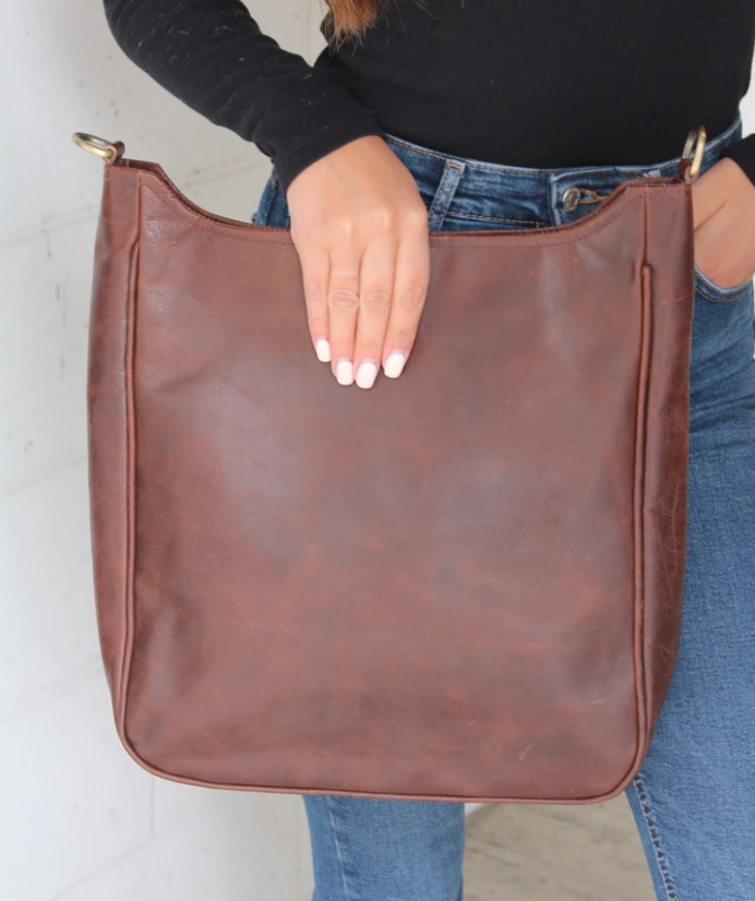 Leather messenger bag with snap closure, internal zipper & 2 small pockets. *No strap included.