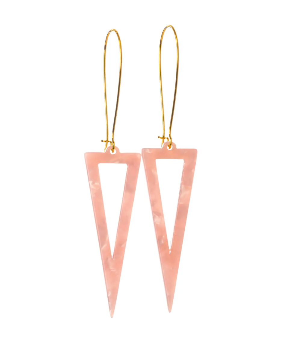 The Kannon earrings are sure to add a statement to your outfit. They're made from pink acetate with a 1 1/2 inch gold-plated hoop.