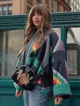Step up your outerwear game with this bold jacket, featuring geometric-panelled prints that deliver a fierce visual impact. Designed for those who like to stand out, this jacket blends urban edge with modern design through sharp lines, contrast colors, and graphic detail.