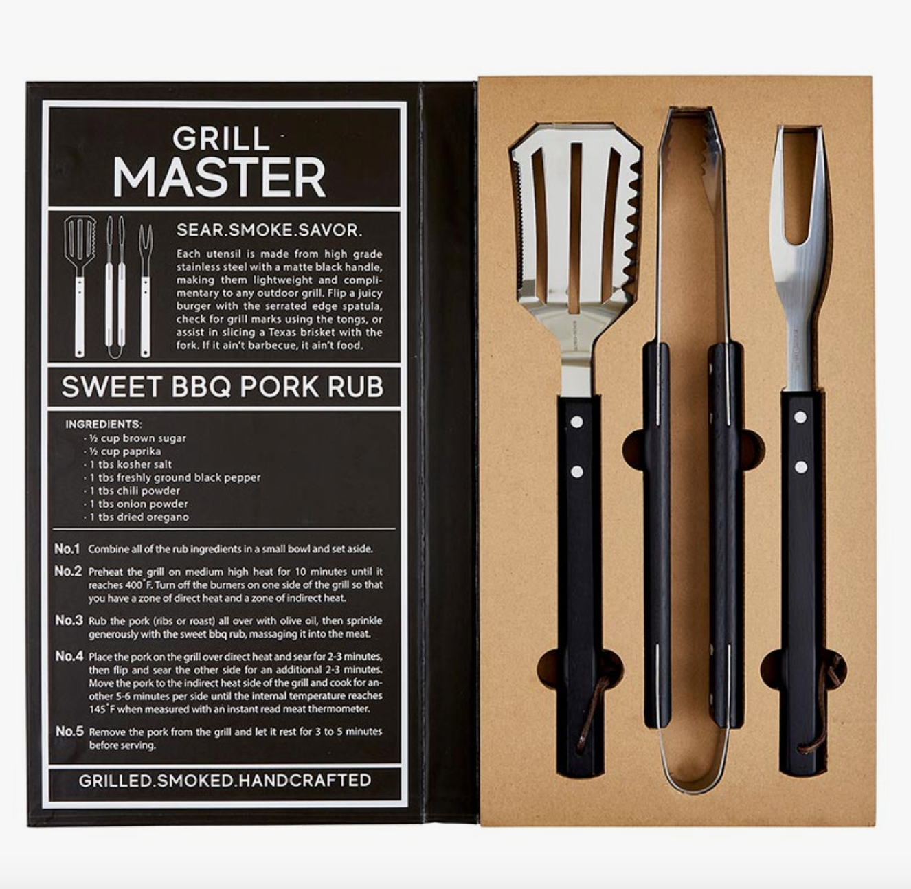 This BBQ book set contains a spatula, tongs, and fork to get you well on the way to becoming a grill master. With adorable packaging and stainless steel tools, you can gift this to a friend or treat yourself!
