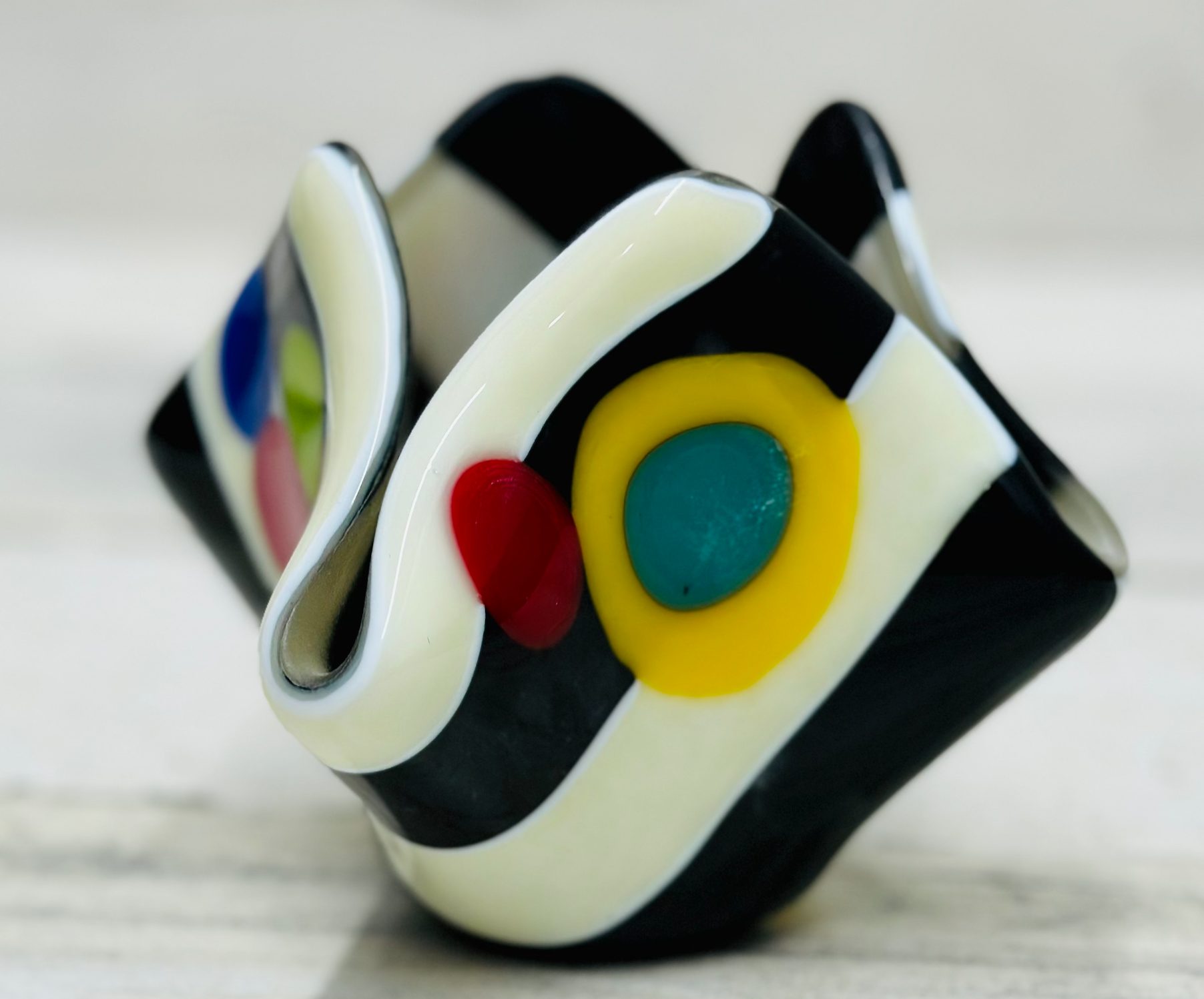 These beautiful handmade glass vases by Suellen Parker are great for all different uses in your home! Put votives in the smallest size or full size candles in the larger ones for a colorful glow!