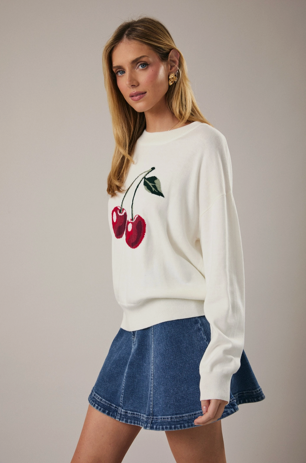 A cozy statement piece with a playful twist. This cherry sweater features a soft, comfortable knit adorned with vibrant cherry that addS a pop of color and charm. Designed for both warmth and style, it offers a relaxed fit that’s perfect for layering or wearing on its own. Whether paired with jeans for a casual look or dressed up with a skirt, this sweater brings a sweet, cheerful vibe to any outfit.